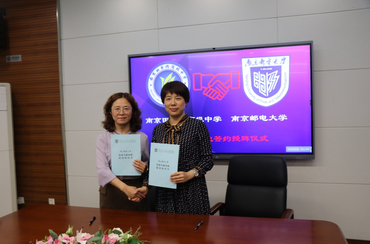 双方就今年新高考背景下招生宣传工作以及今后合作模式进行深入细致的交流,在热烈的掌声中,双方代表签署《南京邮电大学优质生源基地建设合作协议书》,杜月林副处长代表学校为南京田家炳高级中学授牌。