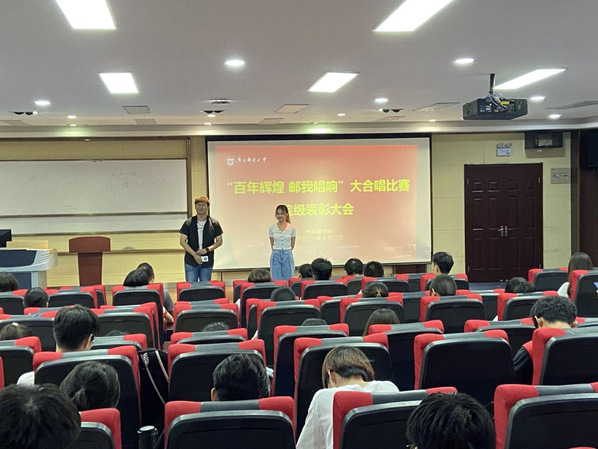 为庆祝物联网学院在校“百年辉煌 邮我唱响”大合唱比赛、 “红色校史杯”戏剧表演中取得特等奖,进一步激励师生锐意进取、奋发有为,7月2日晚,学院于仙林校区教一300隆重举行表彰仪式。学院党委书记邓艳华、党委副书记徐磊、副院长陆音、团委张虹洁老师、体育部蔡景彬老师、分团委书记姚真真老师、辅导员王林老师和赵珂老师出席了表彰大会,大会由党委副书记徐磊主持。