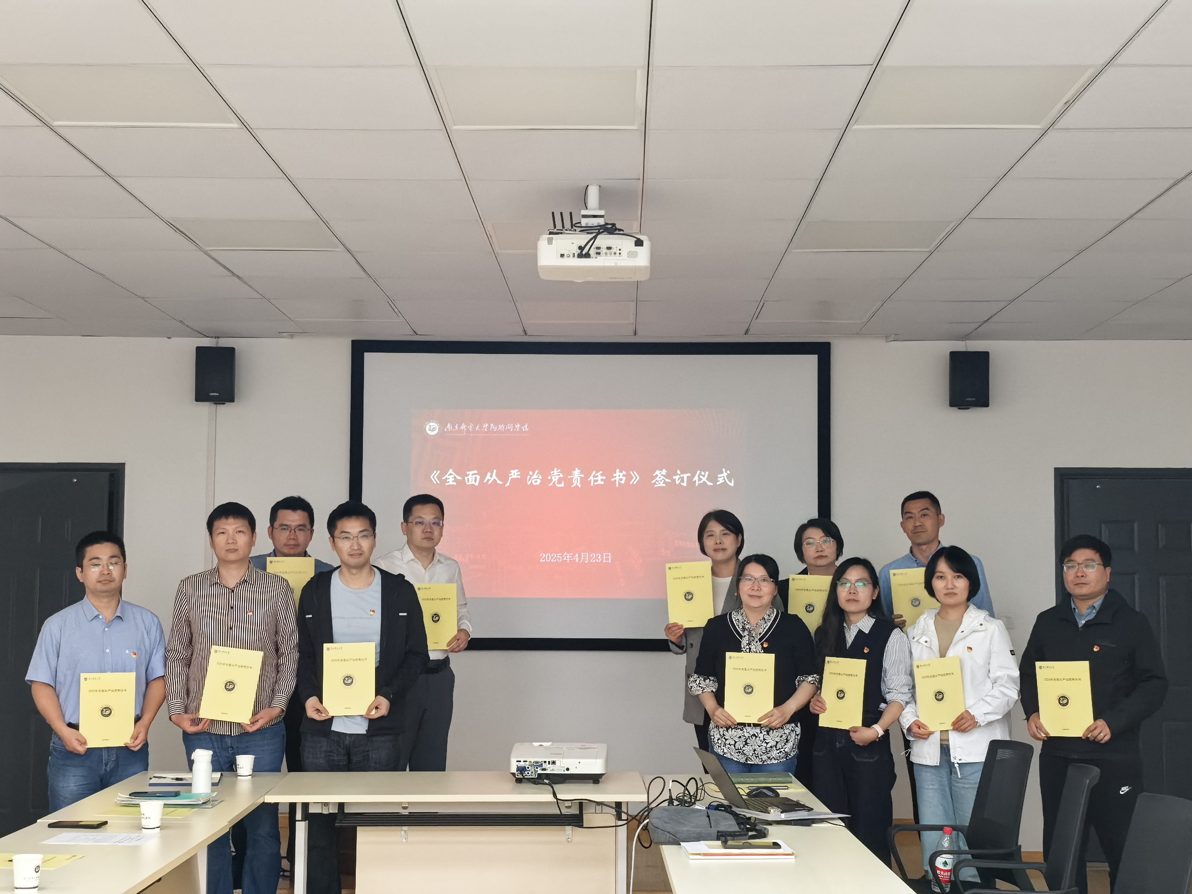 会上,副院长解相朋通报了多起违反教师职业行为规范的典型案例,教育引导全体教师弘扬优良师风,以教育家精神为引领,持续提升师德修养,坚决防范和杜绝各类师德失范行为。学院党委副书记、副院长、纪检委员邓艳传达了《中共南京邮电大学纪律检查委员会2025年纪检监察巡察工作要点》、《中共南京邮电大学纪律检查委员会2025年度落实全面从严治党监督责任清单》和《2025年监督检查工作计划》等文件精神。与会人员共同审议并学习《物联网学院党委2025年度全面从严治党主体责任清单》、《物联网学院党委2025年度全面从严治党监督责任清单》,签订《全面从严治党责任书》,进一步强化组织观念和纪律意识。
