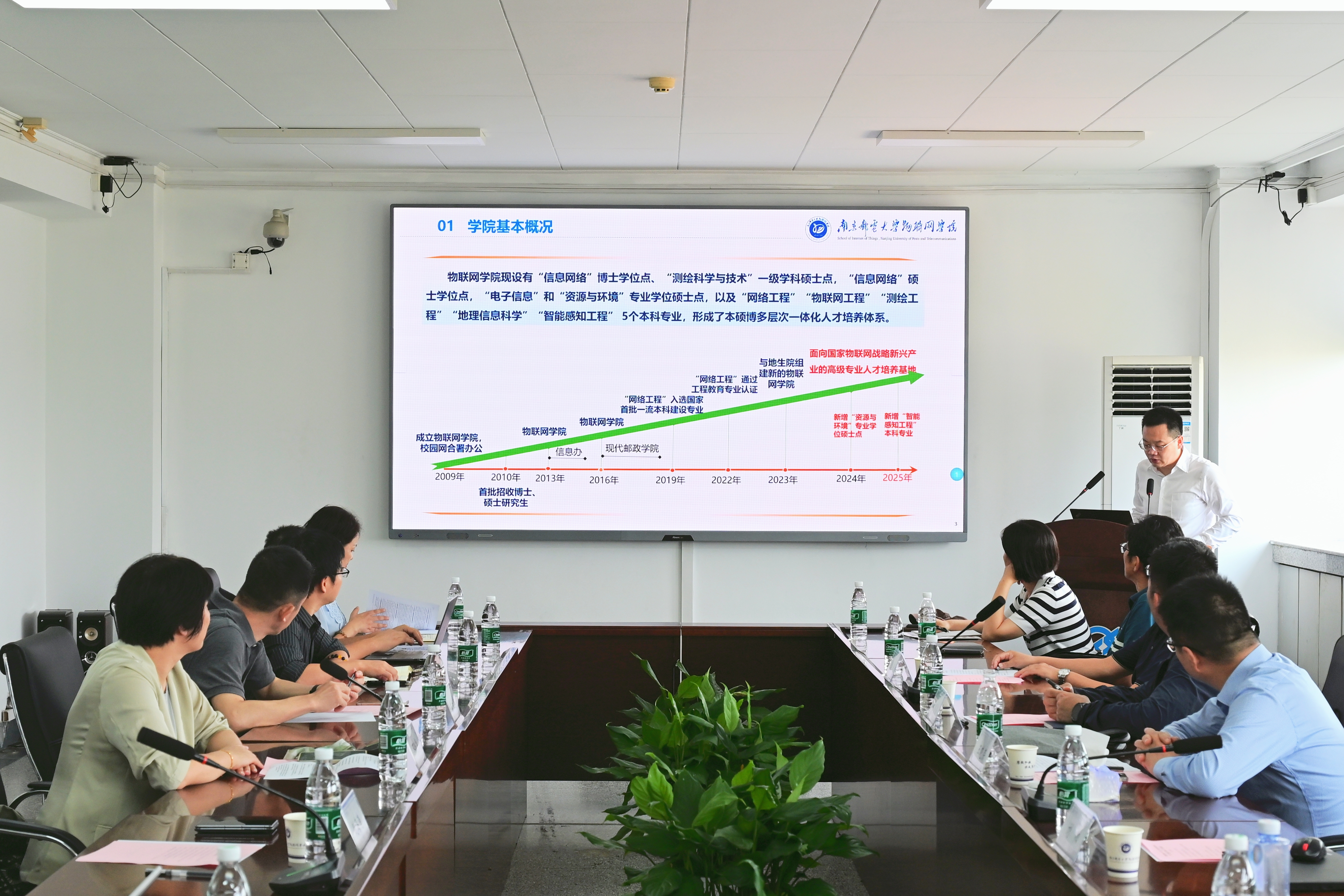 为科学谋划“十五五”发展蓝图,推进党建与事业发展深度融合、同频共振,9月28日,物联网学院在三牌楼校区举办“十五五”规划专家报告会暨“党建+产业链”工作推进会。会议由学院党委书记邓艳华主持,省工信厅信息基础设施处副处长王晓荣、中国信通院工物所副所长刘阳等专家、校发展规划处副处长宋振超等莅临指导,学院院长赵海涛、副院长苗立志及院长助理、系主任、党支部书记及委员等参加会议。