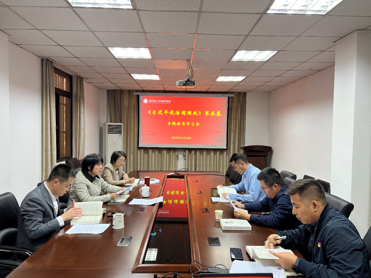 10 月 20 日下午,物联网学院党委理论学习中心组举办读书班,专题学习《习近平谈治国理政》第五卷部分章节。院党委书记邓艳华主持会议,院党委理论中心组成员出席。