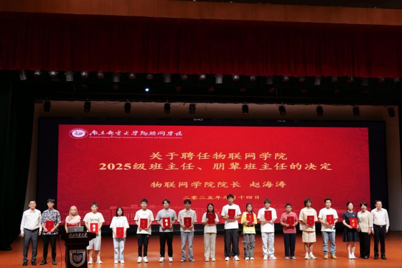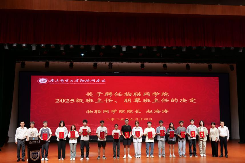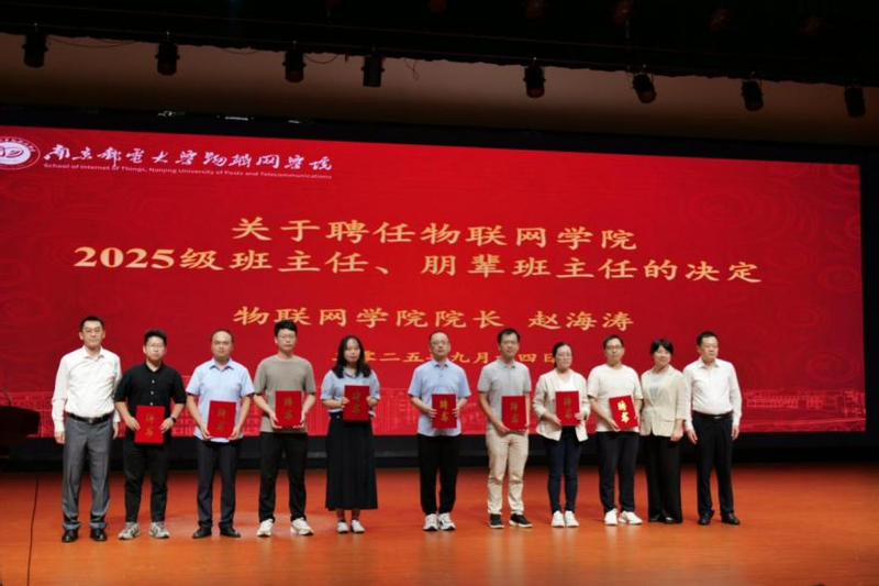 随后,学院院长赵海涛宣读《关于聘任物联网学院2025 级班主任、朋辈班主任的决定》,学院领导为2025 级班主任、朋辈班主任颁发聘书。