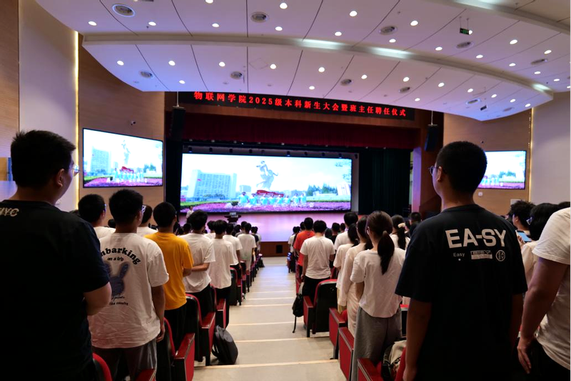 金风送爽,云淡气和。9月14日晚,物联网学院2025级本科生新生大会暨班主任聘任仪式在仙林校区青春剧院隆重举行。全体院领导、系部主任、2025级班主任、辅导员、朋辈班主任、2025级全体本科生新生参加大会。大会由学院党委副书记、副院长邓艳主持。