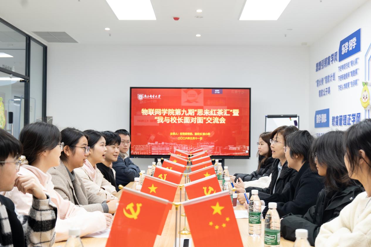 2026年3月11日,由物联网学院党委主办、学工二支部协办的物联网学院第九期“思未红茶汇”暨“我与校长面对面”交流会在仙林校区一站式社区“柚学小院”成功举行,南京邮电大学党委常委、副校长姜小舜,物联网学院党委副书记、副院长邓艳,学工二支部的党员师生代表参会,会议由邓艳主持。